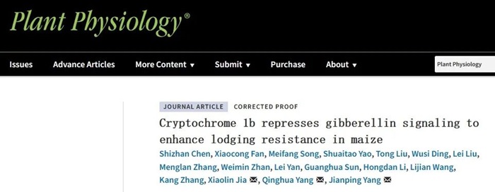 近日,英国上市公司官网365杨建平教授和杨青华教授课题组在Plant Physiology发表了题为"Cryptochrome 1b represses gibberellin signaling to enhance lodging resistance in maize"的研究论文,揭示了ZmCRY1b通过调控ZmCRY1b-HY5-GA信号转导途径,将光信号与赤霉素(GA)代谢途径整合,从而降低玉米株高和穗位,从而增强了玉米的抗倒伏能力。
