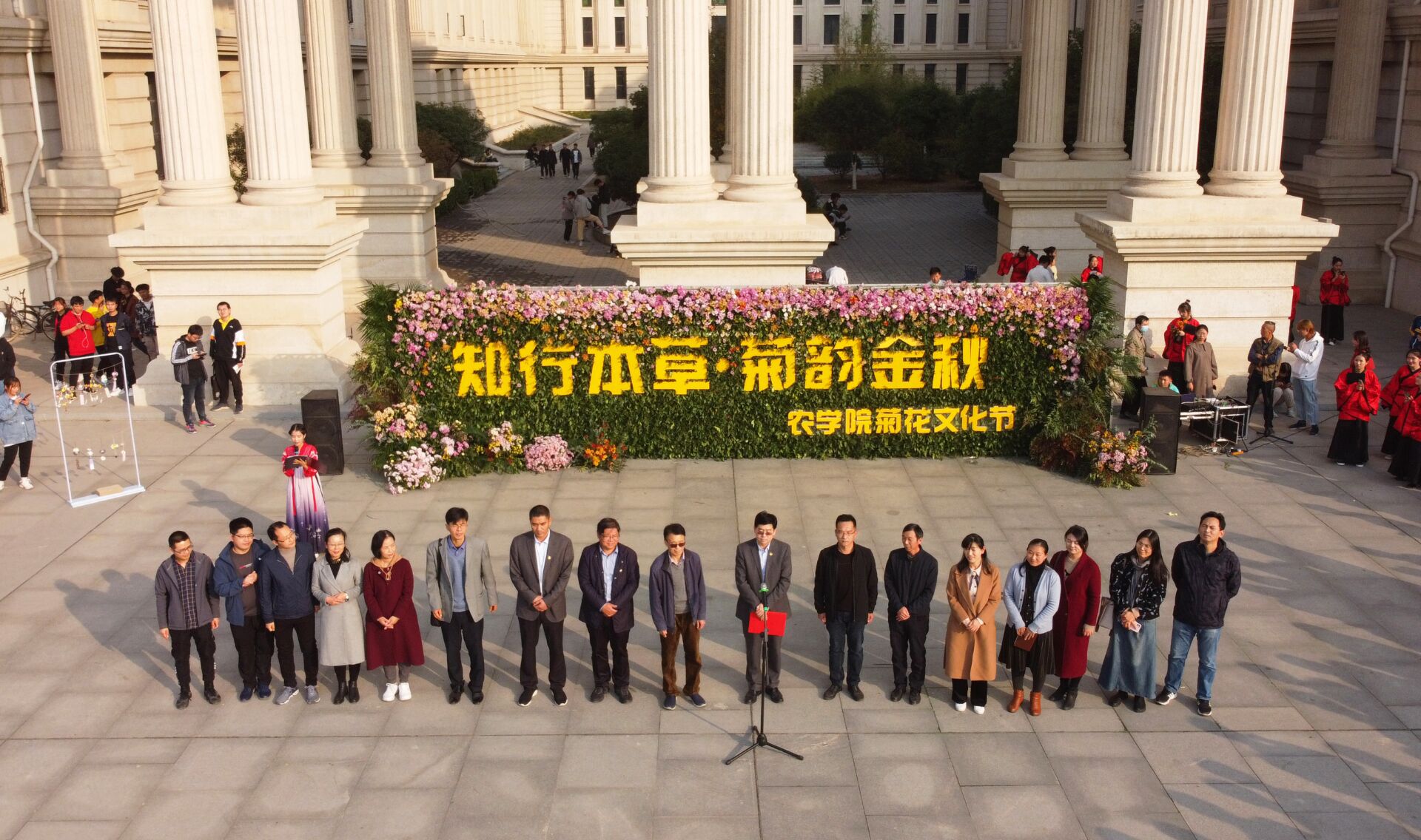 为弘扬中医药文化,营造丰富多彩的校园文化,11月10日下午,我院于龙子湖校区繁塔楼西侧举办了主题为“知行本草·菊韵金秋”第二届菊花文化节。校党委委员、院党委书记郭战伟,院长王道文等学院领导出席了本次活动。我院师生共同参与,也吸引了龙子湖校区众多师生。