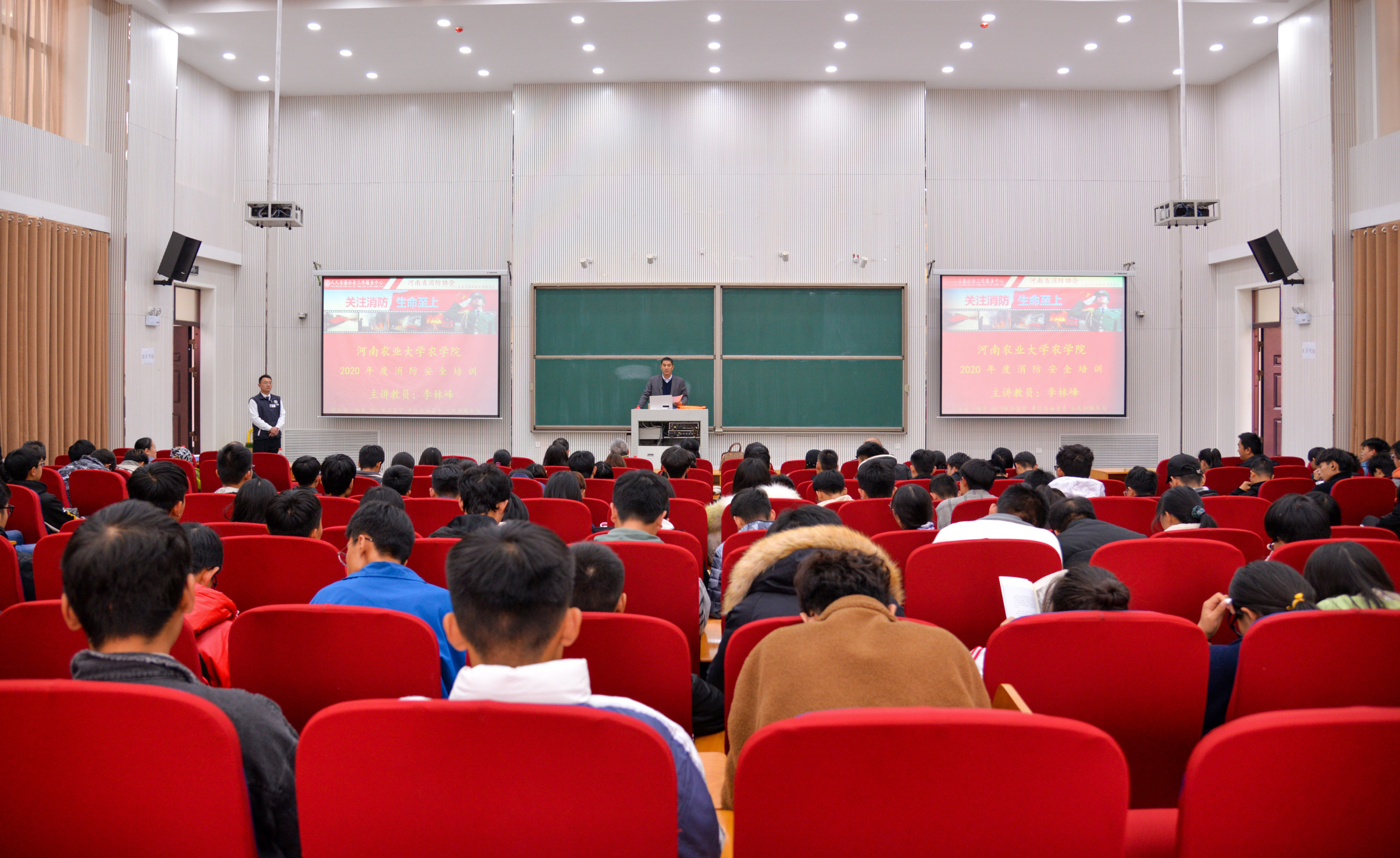 为增强我院师生的安全防范意识,11月24日下午,我院邀请了河南省消防协会教员李林峰在龙子湖校区繁塔楼为我院师生进行了消防安全知识培训。培训由副院长李浩贤主持。