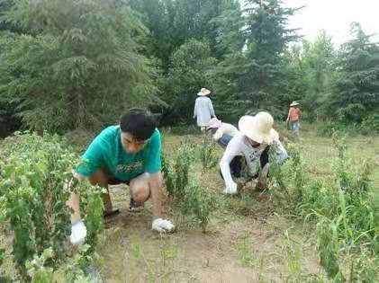 “菊花被水淹了以后,根系呼吸受阻,出现叶子萎蔫,要及时松土、培肥。”同学们认真听取老师的讲解,学习菊花灾后的补救措施和关键技术,对菊花田进行整理和补救。首先对实践田的淤泥和杂草进行了清理,接着将运来的菊花苗进行修剪,然后开始移栽补种,最后,进行松土,并施入营养肥料,加快实践田菊花灾后恢复。在老师和同学们的努力下,实践田的菊花初步焕发了生机。