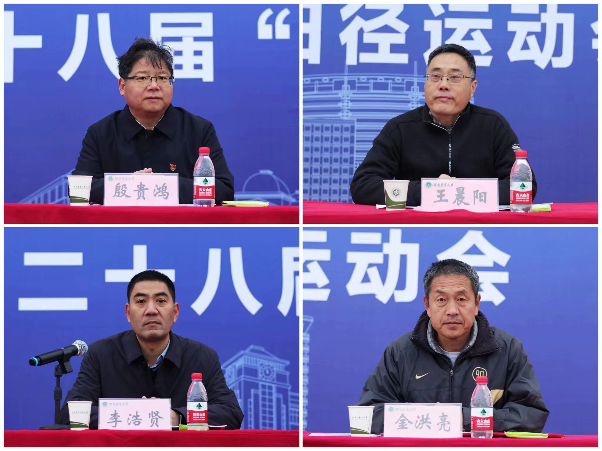 本网讯(通讯员 张文宇 王子威 马禺琳)为激发学生体育锻炼的热情,展现学生的运动风采,11月11日,我院于龙子湖校区田径场举行了第二十八届“宝景杯”田径运动会,体育学院党委书记吴旭静,院党委书记马菲,院长王道文,河南宝景农业科技有限公司总经理高宏伟,副院长殷贵鸿,副院长王晨阳,副院长李浩贤,总裁判长金洪亮出席了本次运动会开幕式。开幕式由李浩贤主持。